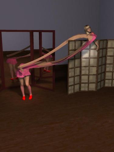 This is in carrara, a genesis pose applied to genesis. It was something I have done a thousand times before with out a hitch, one pose at the begining of an animation and another at the end, letting carrara do the tweening. That is what happened when I applied the second pose at the end of the animation. I have so much turned on in the scene trying to get the clothes to be dynamic that it is hard telling just what caused it. I couldn't do anything from there though, I just kept getting a nil point error; big surprise right lol