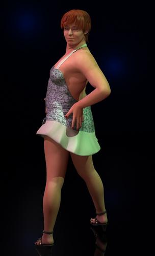 As long as it's a male character, who wears female clothing, I think all of the guys are fair game. ;-)