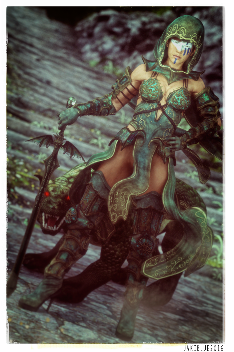 Chanteur- that's incredible art. Love the photo filters, and also how the flowing hair complements the skirt. The composition really works well. Are the dragons at her command or getting ready to pounce on her? She looks like she might turn on them or command them forward to attack the viewer. Either way, they sure have their eyes on her.