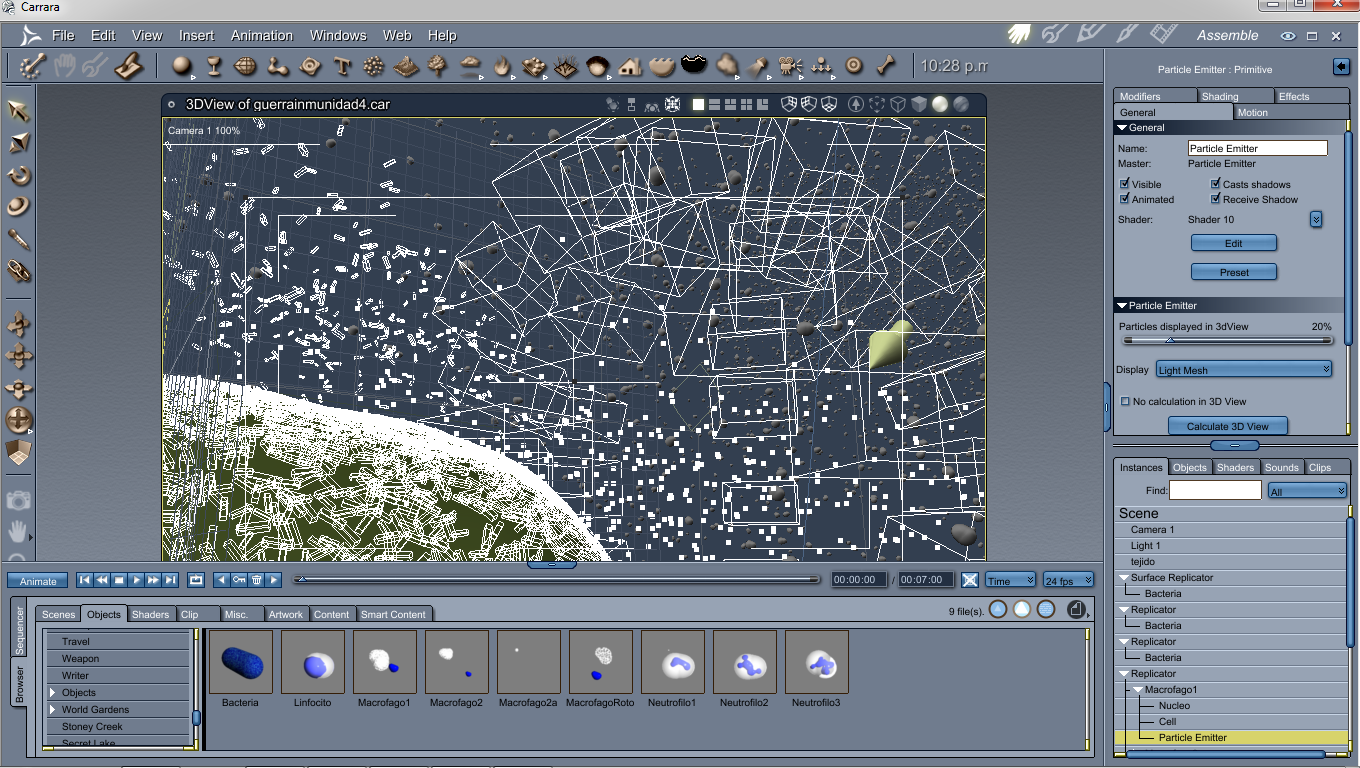 The giant leukocytes are macrophages. I used particles (metaball shape).