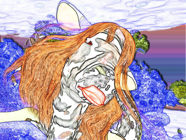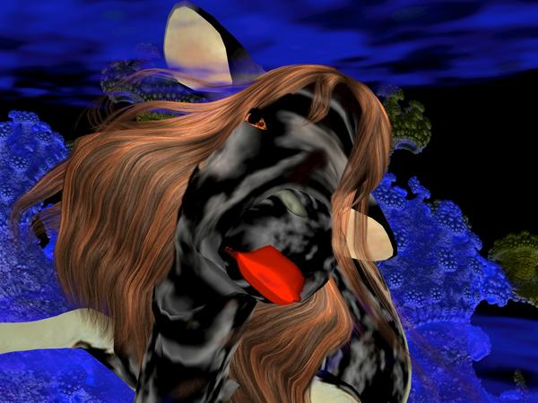 I'd originally intended to keep clothing to a minimum and use no scenery because I was worried about the render times with Poser hair. Well ... as you can see, I changed my mind. I kept increasing the Hair Density, without a noticeable increase in render time, but at 13,500 density, I started getting nervous.