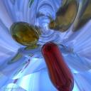 I could not refrain from making yet another abstract. Rather dark one, this time. I used a couple of metaballs that I 3D-dispersed and surrounded them with a cube that is fully reflective, but has some transparency. Light from several spotlights and an abstract HDRI. I made another one (further from the metaballs) and called it 'invasion of the body snatchers', which is at Deviantart and one with another sky and no transparency on the cube, with panoramic rendering, at Renderosity. Enjoy. This one is '' Almost got you'.