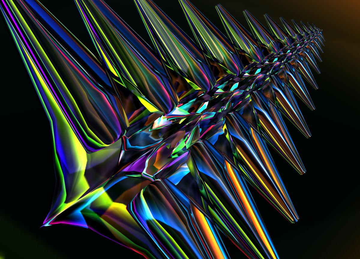 Yet another Incendia/Geometrica object render. Essentially transparent with a low refractive index (0.7), PHT boosted specularity and anisotropy. Backdrop is an HDRI providing specular and negative light. Because of the fine lines, anti-aliasing settings needed to be at max and though the render was swift, AA-ing took another 6 hours.