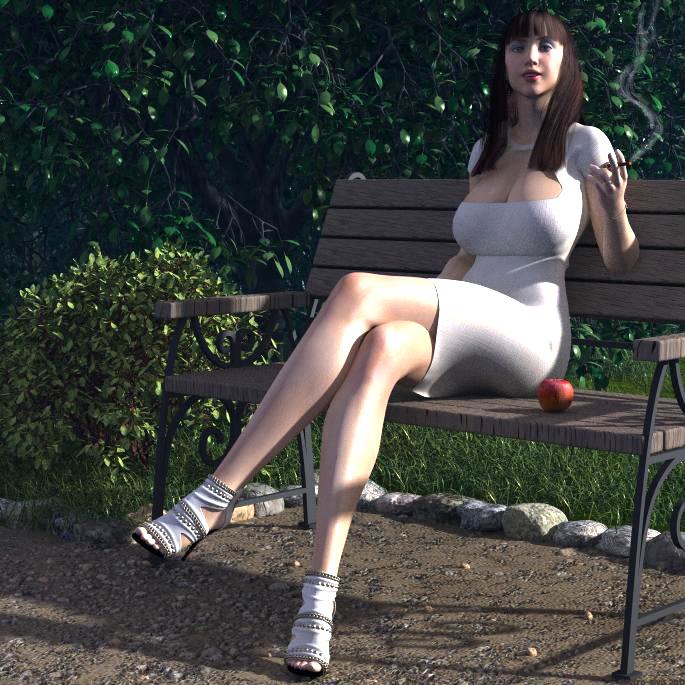 Electro-Elvis - this is a very well done render. Facial expression and posing of Irina are excellent, lighting and vegetation, too. Only suggestion I have: give Irina more head- and foot-room. She appears to be pressed into the image frame. About as much room above her head and below her right foot as her hand has on her left.