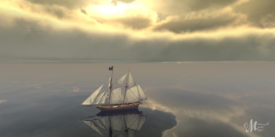 Mermaid -  Lovely material and lighting to your fractal. And lovely seascape.  looks like a great day for sailing