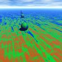 Curvature filtering experiments continue, they don't look much, mostly infiniate planes and primitives at various distances.  I don't know what scope for usefulness these findings will have, but it is always interesting to know.  However in the interest of having a bit of fun.  Here's some simple images using complex materials.  Two planes, three planes, inside a cube and inside another cube.