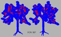 We're not yet there with understanding curvature completely. It appears that also the camera angle is taken into consideration. Two simple metaball objects (Bryce trees, wood only, no foliage) and "default" curvature in channel C as in the video. The objects are the same (copied) and equally left and right of the camera. One has the camera (almost) isometric with FOV 1 degree, the other 80 degrees. At least half of the objects ought to show the same pattern.