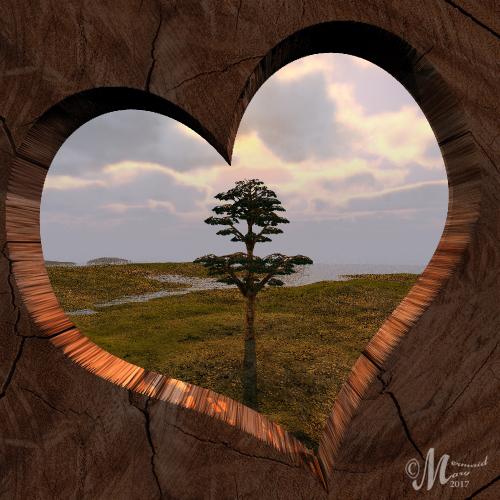 Mermaid - thank you. Neat idea with the heart-shaped window. The shadow from the tree looks as if it were still the trunk. Moving the sun a bit would give the shadow another direction.