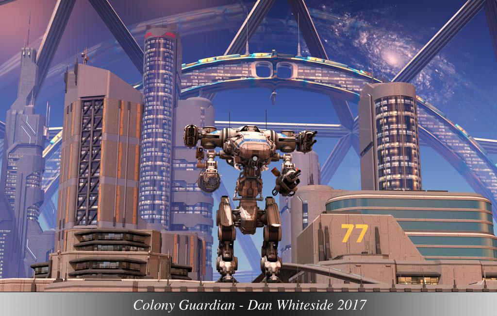 This image  uses Greeble City Blocks 2 and 6 as well as Stonemason’s Mech 2013 (all from DAZ3D).