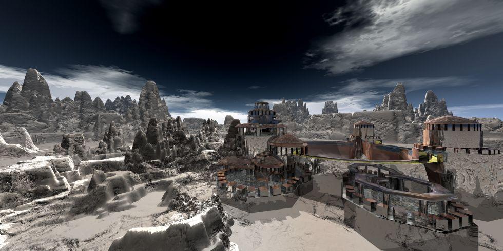 adbc - much better but somehow the castle doesn't get the full credit. This must be on an other world with two suns because we se shadows from two sides. The sky looks great (though I liked the previous one as well).