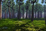 The Giant Sequoia, a BTO tree, is the only (except palms) that has a long trunk and the foliage only high up. I took one and a default tree reduced to a bush and used the Instancing Lab to place them, 350 in total. I think manually placing instanced trees would have given a better result.