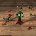 Here are plants, all Bryce trees: the plants in the pot, the moss in the pot, the grass and the stones. The scene is embedded in an HDRI backdrop with separate DOF setting, rendered with DOF (focus pot centre, radius 0.035). Ambient light by the HDRI and the key light by the sun.