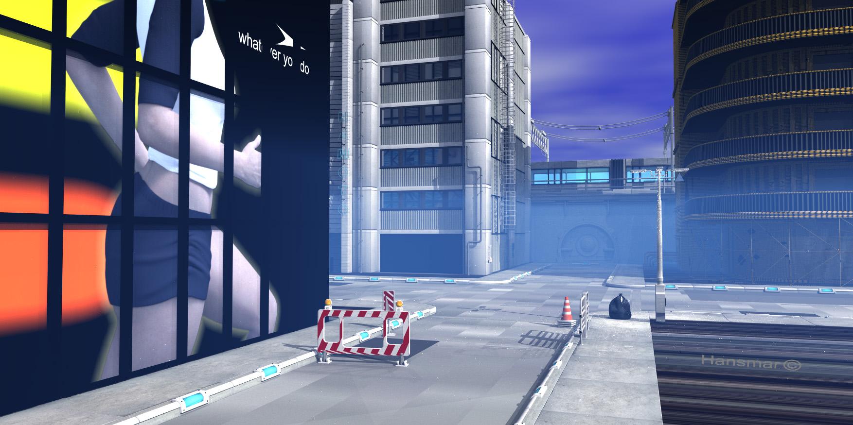 First is made with part of the free urban streets of tomorrow set: https://sfman.deviantart.com/art/Free-for-DAZ-Urban-Streets-Of-Tomorrow-by-sfman-723531345. I tried to send the whole set from DAZ to Bryce, but that made it crash due to 'out of memory', probably due to the textures. So I decided to send only parts.