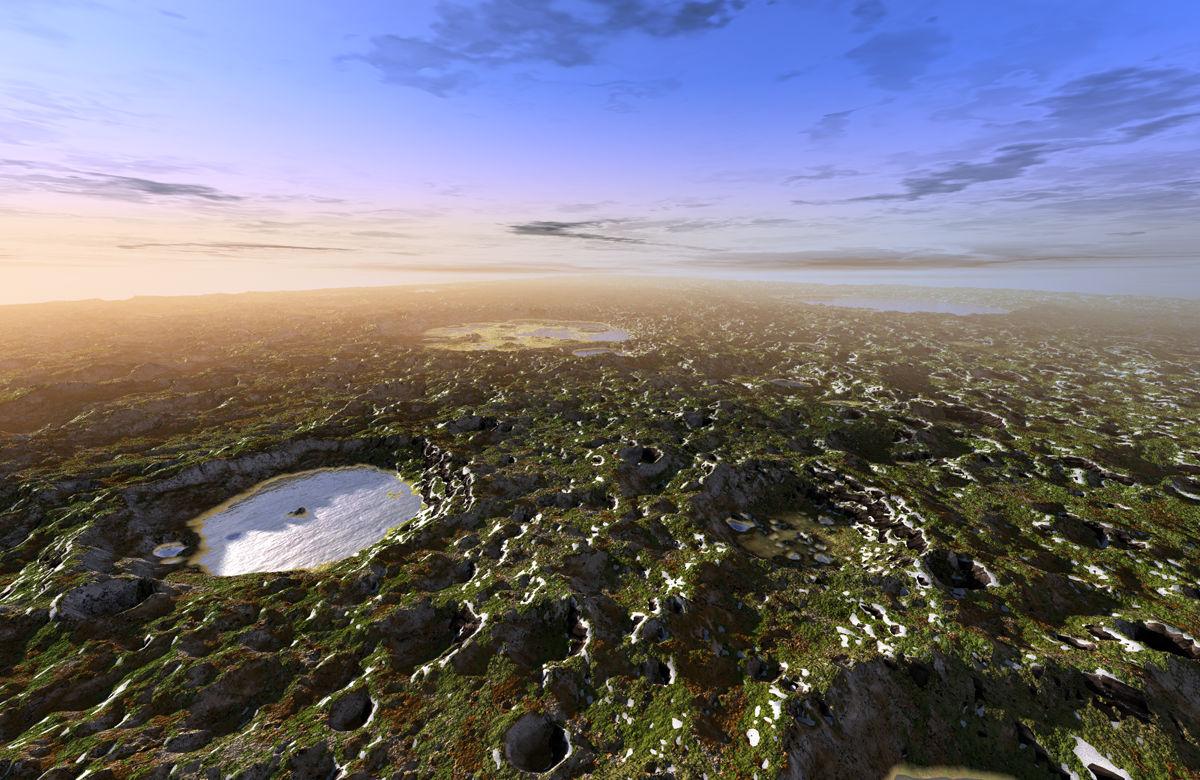 Inspired by Jamahoney's animation I terraformed part of the backside of the Moon. The camera is at 152°E and 9°S looking north-east. The near crater has no name, the one in the middle is Mendeleev and to the right near the horizon is the Mare Moscoviense.