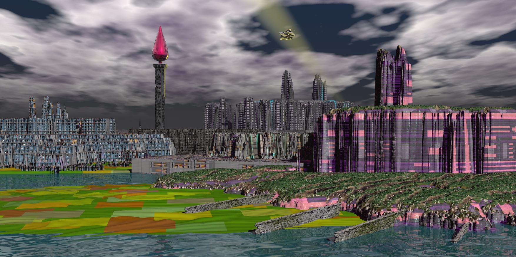 I made a new landscape render. The city blocks are also terrains. I used triple terrains for each of the blocks, but this is not very visible. I have to do more, to make mover variation this way. I created these landscape-city-blocks by using the filters in the terrain editor.