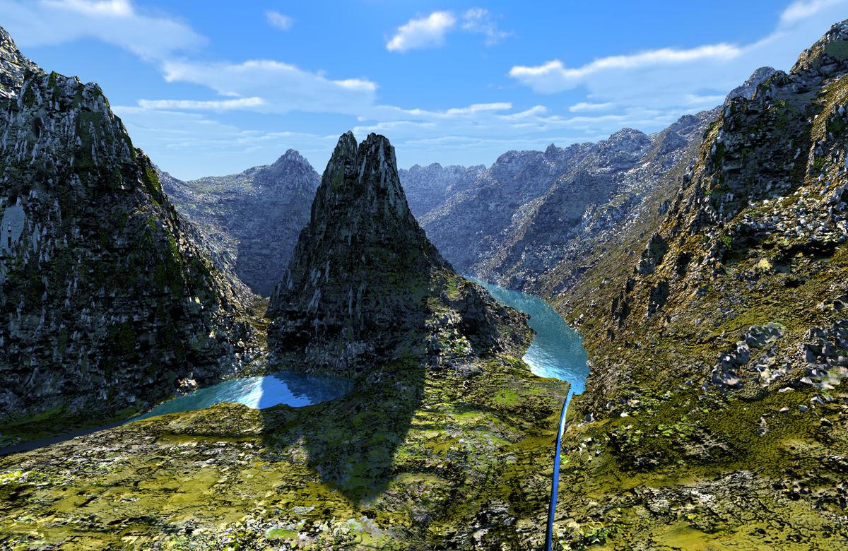 Horo - great render, you succeeded with the creek, nice terrain material and lighting.