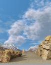 Another landscape with stacked terrains and pre-rendered volume clouds on a sphere. Ambient light and sky colour from a CSD (clear sky dome) HDRI.