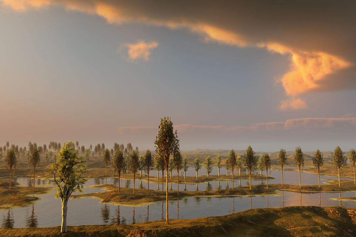 No anaglyph this time, just a simple watery landscape and a couple of trees.