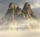A double stacked terrain with a fog patches sphere. Unfortunately, volume materials on a sphere cannot be used within another sphere with volumetric material since Bryce 6.