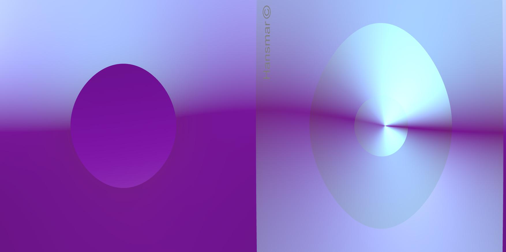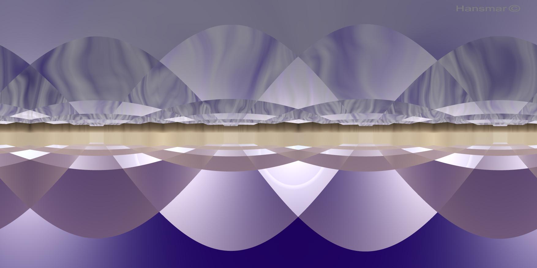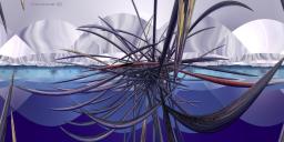 I could not resist making more abstracts. This time I made several renders. At first, I made a render with the spiky-things. Then I noted that the background (just a rotated box around the spiky-things) in the panoramic render already looks quite nice. So I rendered that separately. Next I decided to rotate the camera (never thought about that before, unless to have a tilted view. I made a panoramic render with the camera rotated 90 degrees on the Y. That leads to the 'roots' you see hanging down. Then I changed the sky rerendered with the 'CD' as a result. Hope you like them.
