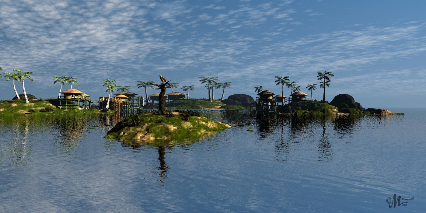 Tropical Paradise using a model from Share CG by Herminio Nieves and Horo’s Sunny Afternoon Hdri from the Hdri Enhanced Skies product.