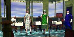 Render of a Victorian style cafe setting.  Used Genesis and Wendy's Roaring 20s clothing on ladies and Georgian style clothing on male.