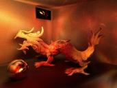 Experiment with the "TA Image Projecting Hyper Gel Light" by David Brinnen. After watching the three videos, I made a one page MEMO (including the video links, on my website under Documents > Memos > Lighting). The renders are noisy even if rendered with 256 rays per pixel, though it depends on the overall brightness of the gel. The gel used on the radial is shown in the picture on the wall. The Hot Dragon is noisier than the Cool Dragon. Noise can be annoying but can also add some charm. I find the noise in the Hot Dragon render is not offensive and in the Cool Dragon acceptable.