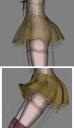 In this case, I'm trying to pose a G3 female figure with a short V4 skirt. The skirt fits nicely when standing; when I bend the thighs the skirt follows except in the middle . . . hence this weird stretch (attachment). Actually I've tried posing a short skirt like this multiple times . . . no matter which figure the skirt was designed for it seems I always get this stretch in the middle (i.e. skirt seems to be posing each thigh separately). Suggestions? Obviously what I would like is for the entire hem of the skirt to move up uniformly. I even tried not fitting the skirt to the figure and using a D-former . . . that too was a mess.