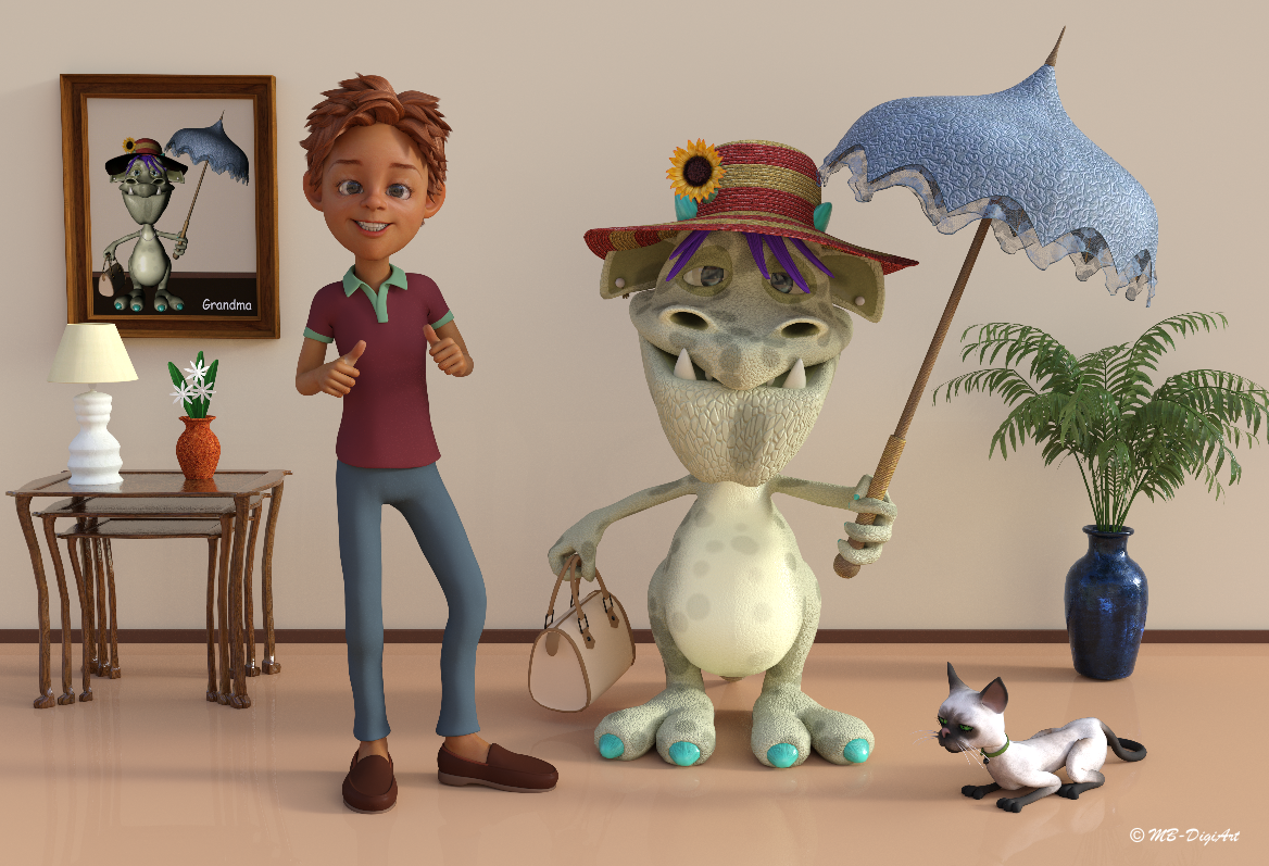 Sort of a pre-test of the Toon Crab, TG2, and the Pond as prep for an Easter render. Don't know why the girl's hair didn't come out blonder, I choose the blond iRay shaders from the TG2 baby. I wanted a platinum blonde.
