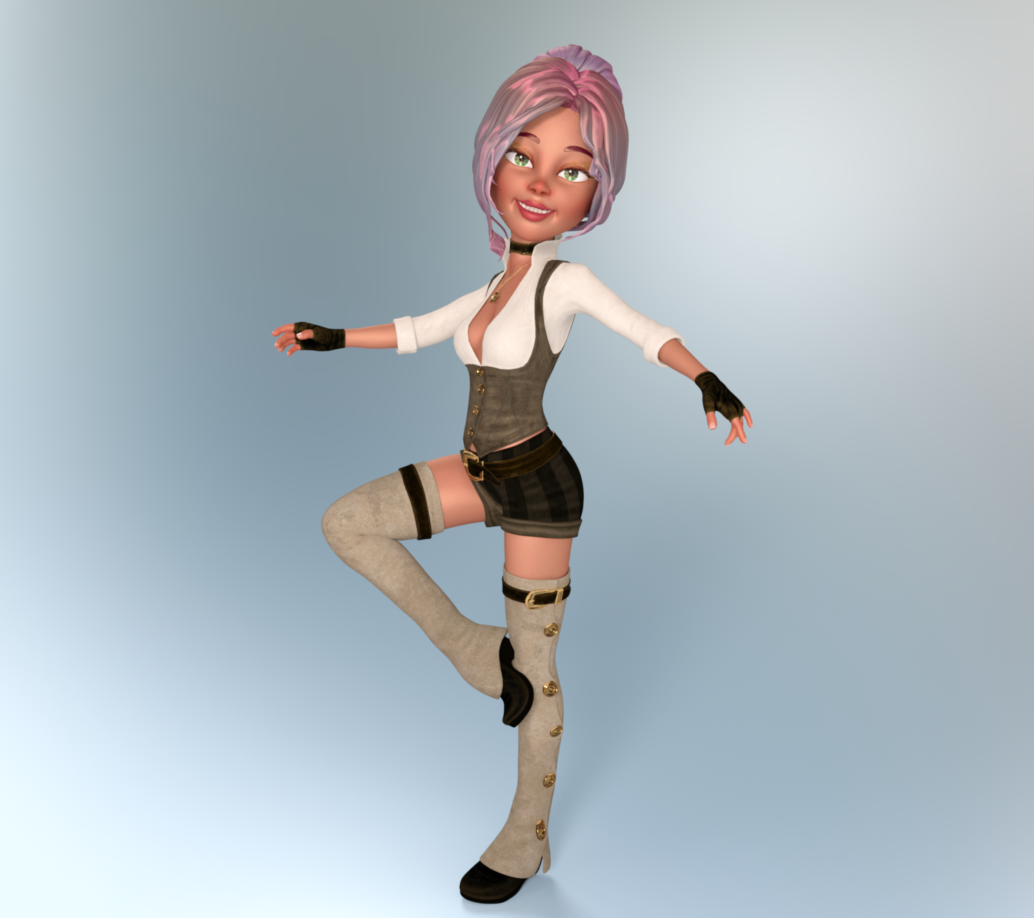 Here's Pinky again (G3F version.) She's raided Star's wardrobe and even her hair! That's Voilet Hair and the Steamer Outfit. Patty better watch out, she's next!