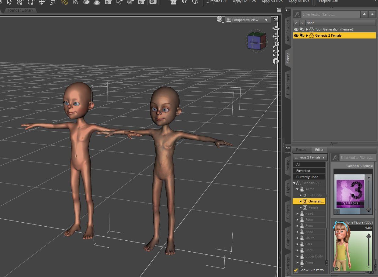 Save        Actually the Original Toon Generation is way older then Genesis and is a stand alone , so 3DUniverse created clones of the original Toon Generation for Genesis3 so that the      clothing and hair will work with the new and improved Toon Generation2 AKA Genesis3