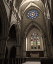 With the windows emitting, the render convergence ramped up more slowly without the fast jump to 96% with ghost lights only. But the render time to 100% convergence was 29 min 39 sec, not much longer than what I posted previously 23 min 58 sec. Just for the record, the rose window glass has 36 polygons and the lower window 16.