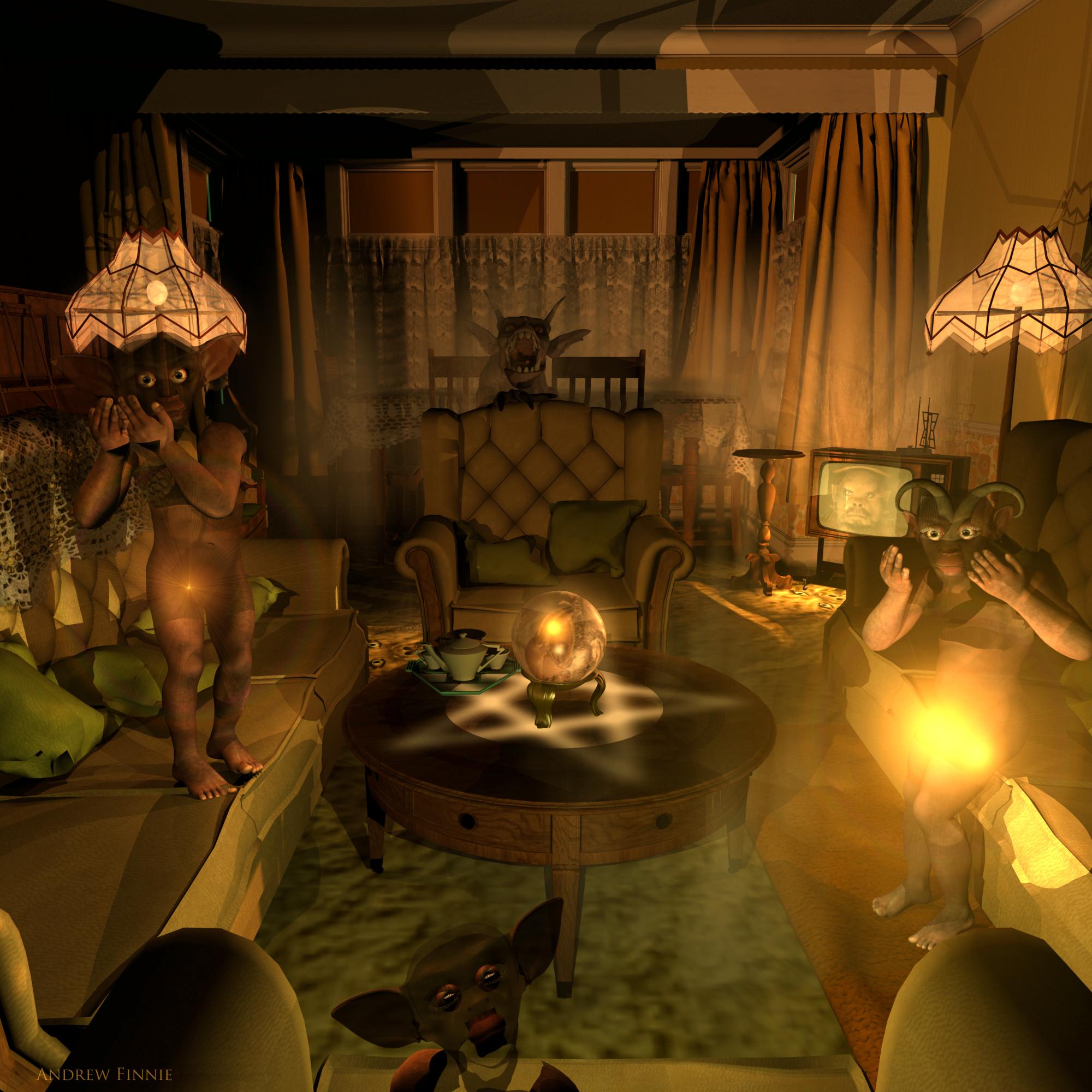 here's a render I worked up based on the nopostowrk image I posted in the latest challenge - I used Oloneo relight - it lets you choose the individual lights in the scene and you can influence how much they light up th erest of the scene etc