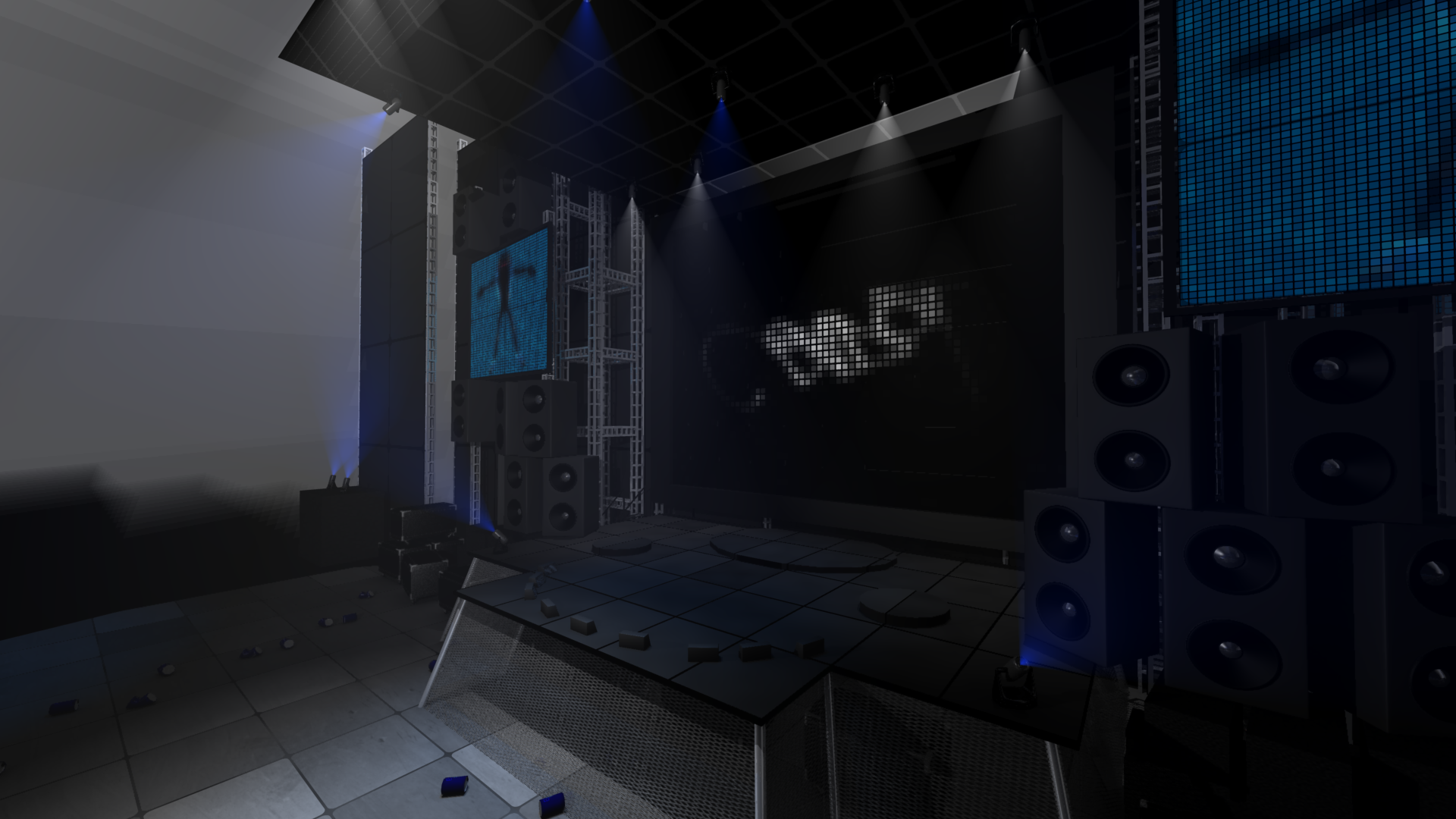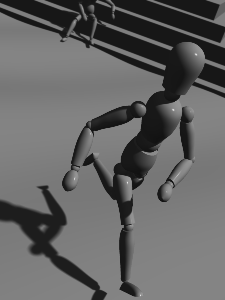 The basic compostion with one direct light, two Poser manequins, one Poser stepped pyramid and a ground plane modified to add interest... Soft shadow and Camera depth of field too !