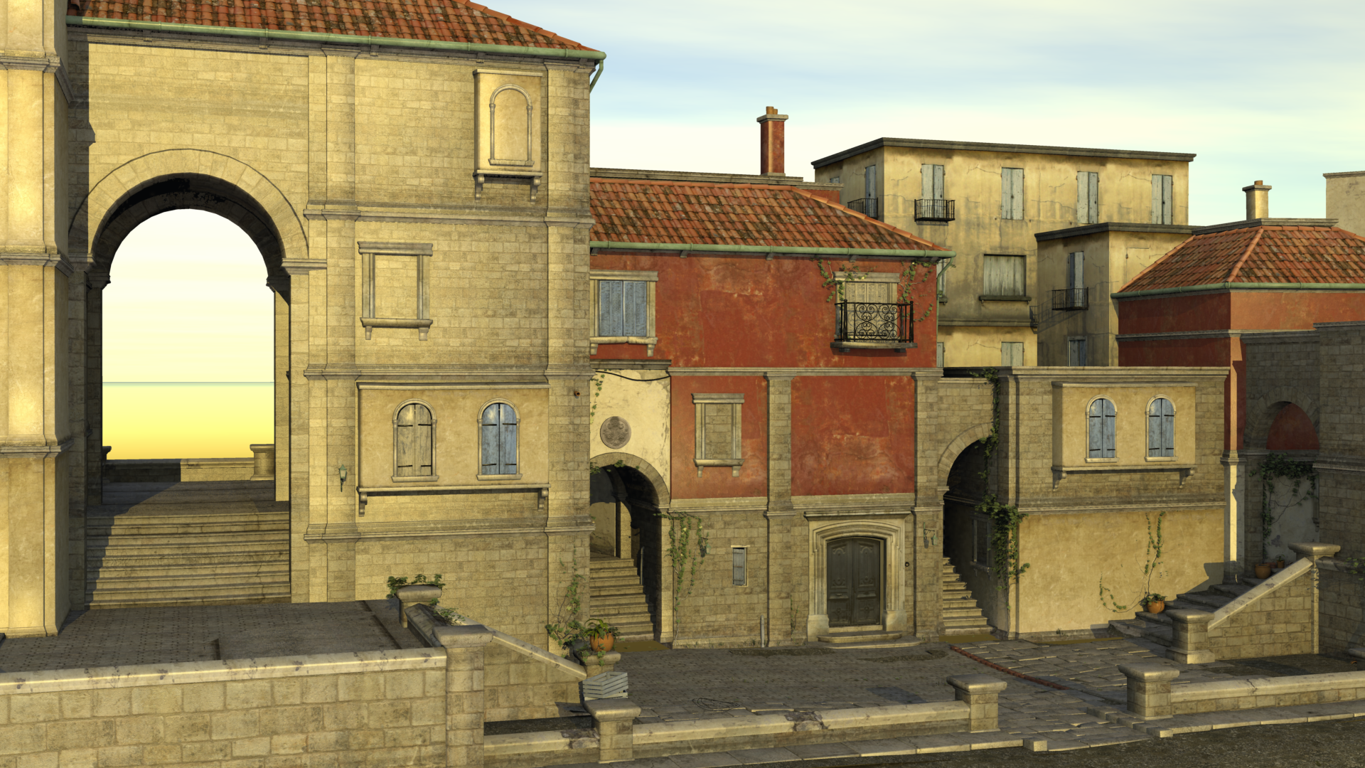 streets of the mediterranean, poser import. surprised to see windows bricked up, or i messed it up, missed an opacity map