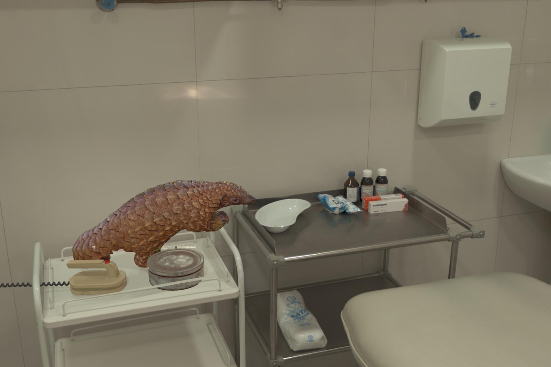 A render based on the theory that COVID-19 was caused by Chinese people eating raw pangolin scales to fight impotence.