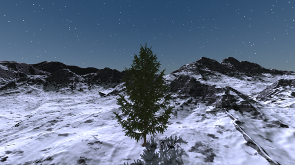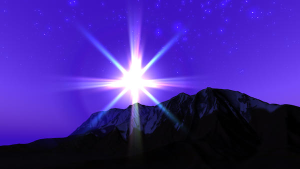 Fair enough although I didn't want to pidgeon hole you into something too specific on the chance Bryce could do something that works but yet isn't quite the same. I guess it wouldn't hurt to describe the scene. I'm envisioning a mountain scene near the top of some mountains. The ground is snow covered although not heavily. In the fore ground is a single pine with a decent Christmas tree shape. In the background are some mountain peaks and the horizon and a clear starry night sky. The camera is positioned and the tree of a sufficient size such that the top of the tree extends into the night sky and the Christmas star effect (to give it a term for discussion) is positioned and of a sufficent size to appear as if the star on top of a traditional Christmas tree. If I can figure out a reasonable way I may too have the tree somewhat decorated by things of nature, which would essentially be wind blown debris in the tree and yet have the appearence of decorations, perhaps by the tree being covered in ice and snow as well. Ideally the star would also cast a pale bluish white light on the tree or the tree would be in a pool of moonlight giving the tree somewhat of a lit highlighted effect compared to the surrounding terrain. If I could complete such a concept I'd title it "The First Christmas Tree" or "Mother Nature Celebrates Christmas"
