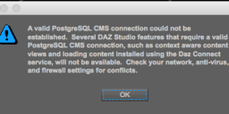 I've always got that error, I've never been able to connect, even after uninstalling and reinstalling daz and postgre.