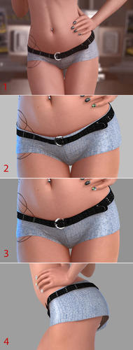 In pic 1 you see a cut out of a render I did a while ago with DS4 Pro. The pants snug to the body, fit nice and tight as I wanted it too look. I achived this by simply scaling and translating the item and then mesh smoothing it.