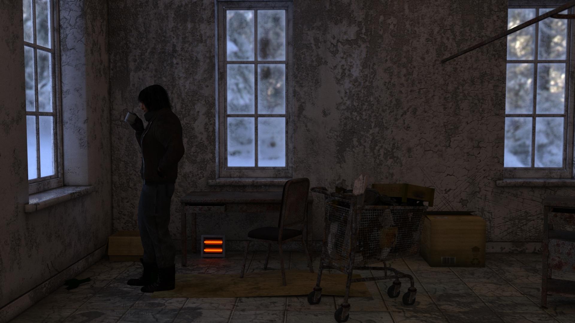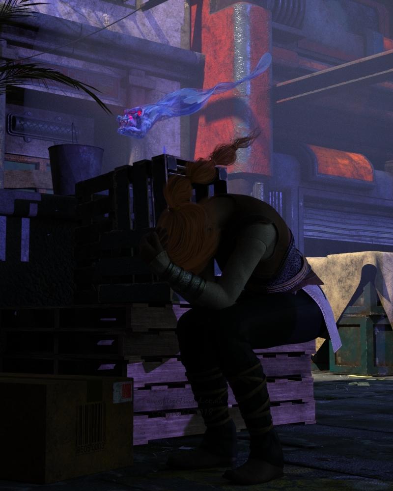 I agree, the open door and lights and the pose of the critter really bring life to this scene.