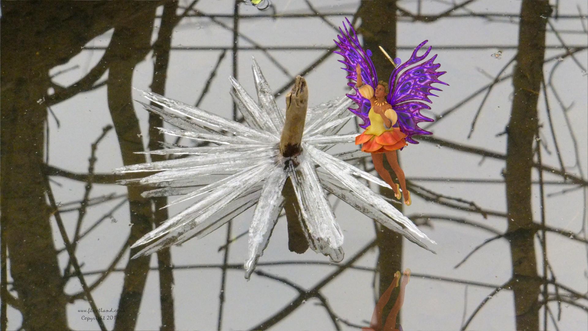 I took this photograph of a stick coming out of a pool of water with a crystal ice star around it. I thought getting the reflection of the fairy in the background image would have been difficult but it turned out easier than I thought smiley