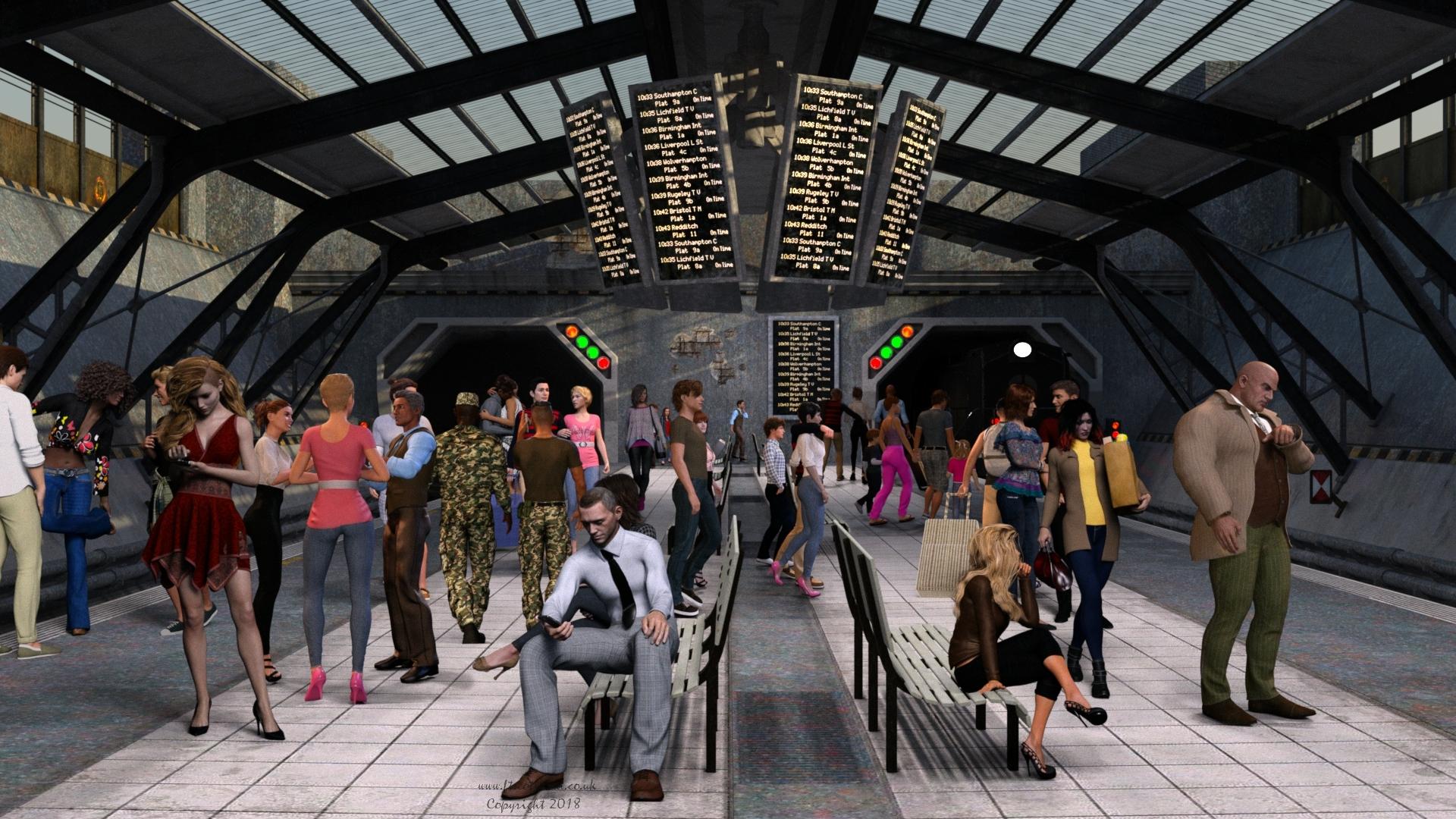 The Waiting on the Train render is very well done, did you use the Now Crowd Billboards?  Its looks very good.