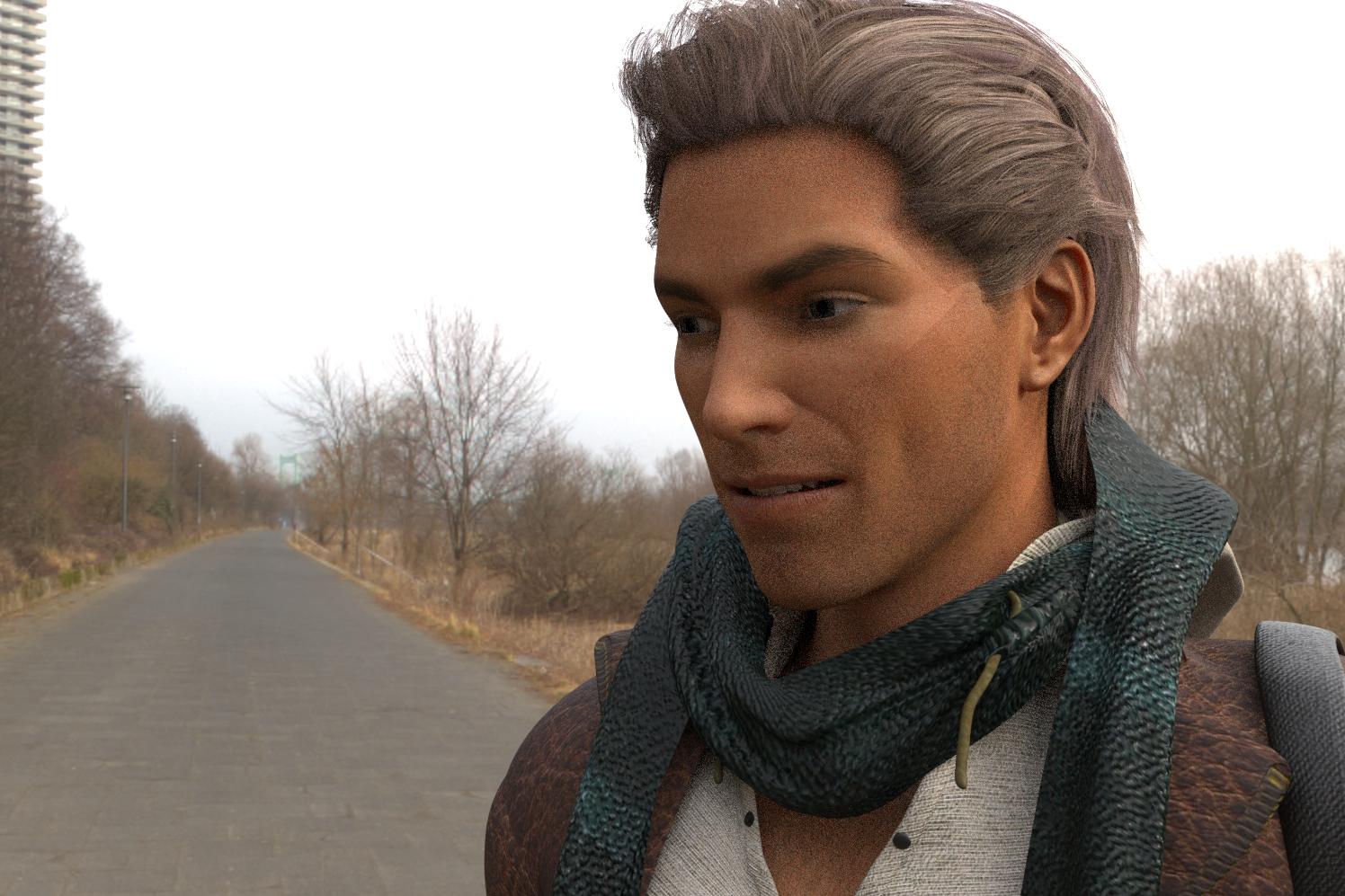 Some problems with the traveler. I turned the dome with the same HDRI in it and the hair skull cap and the beard are showing up in the render. I have just noticed it is also showing up in the first render slightly too so it is the change in HDRI that is causing it. Some work to be done methinks :)
