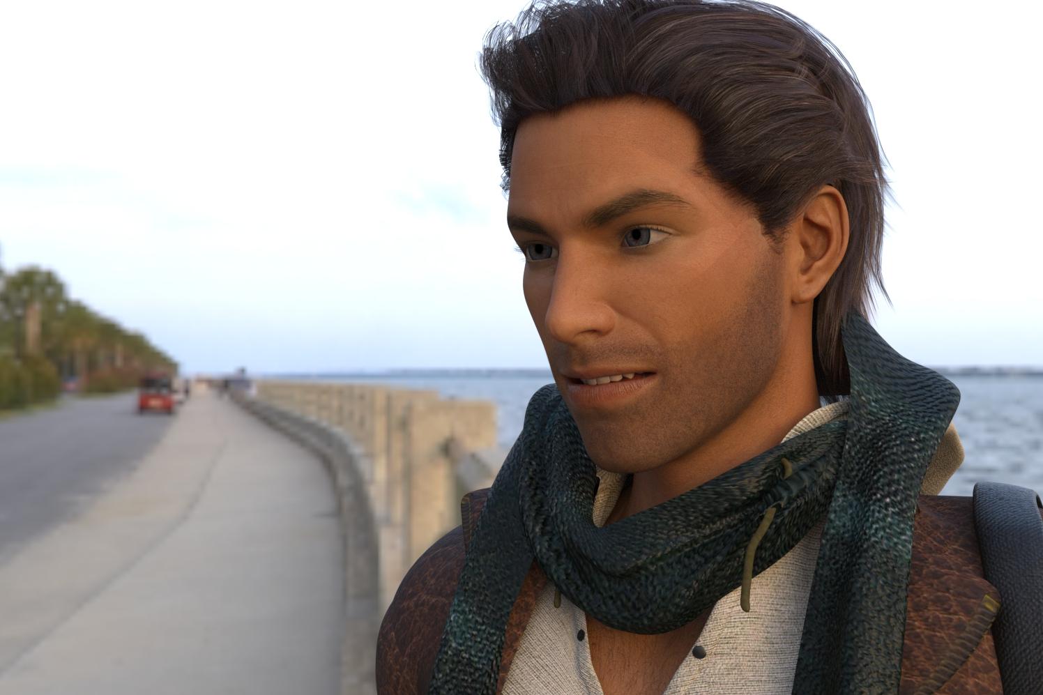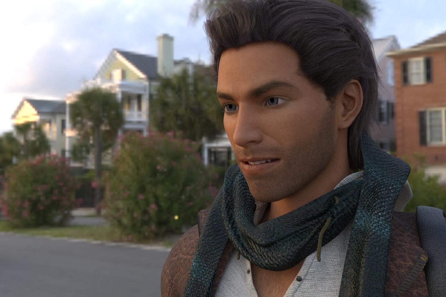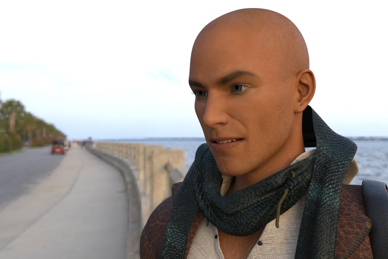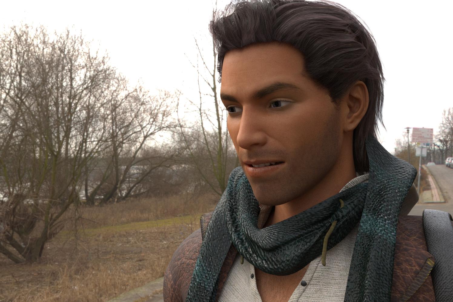 Some work done on the scarf to fit it closer to the neck and Iray skin added to Genesis 3. Rendered in 52 mins Cpu only in Iray.