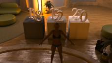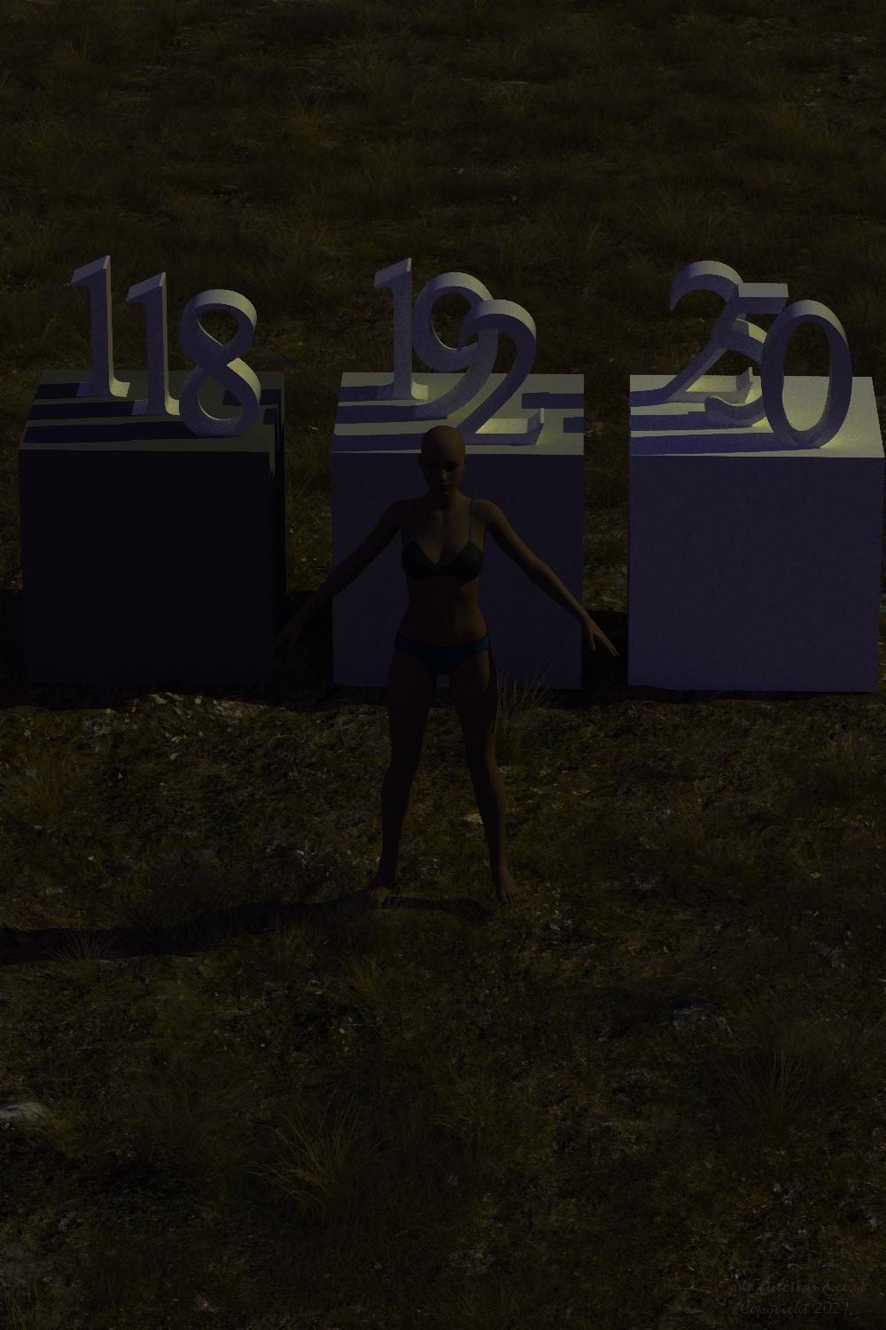I added the base Genesis 8 and , for outdoors, the Highlands Preload scene with the fog and mist turned off. The indoor scene uses Spa and Lounge preload scene. Lighting was Sun and sky 21st June at 14:30 in the Northern Hemisphere 56º N -4º W for the Daylight scene, 21st December at 23:30 for the night scene with a Distant Light -- Colour 217; Intensity 89%; Lumen 0.10; Temperature 4100 for the Moon.