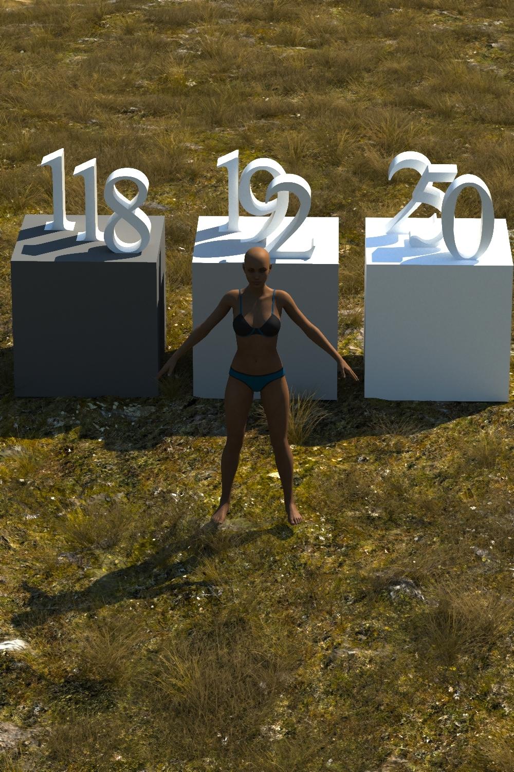 It set me wondering if the colour actually made a difference so I set up a scene with three cubes with the base colour set at 118, 192 and 250 with the numbers at 255. These are set with colour settings I found on the internet.