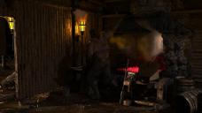 This is the same scene after I had adjusted everything of the Forge, adding smoke to the fire and deleting the supplied one and deleting the structural ambient light and adding a Point Light.