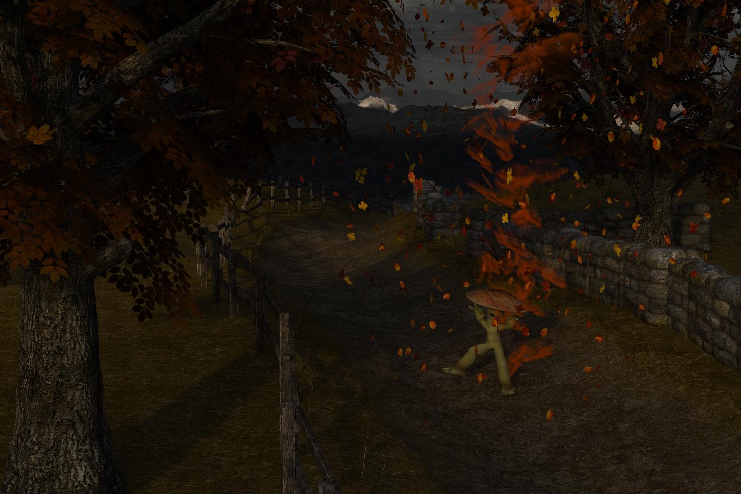 This started off by trying to get a sort of dust devil, but it grew. I re-loaded the Autumn set from the previous renders and added the Plant Pixie