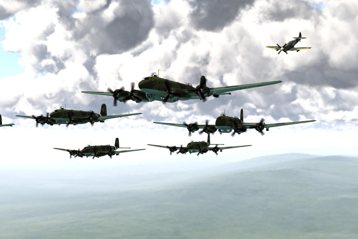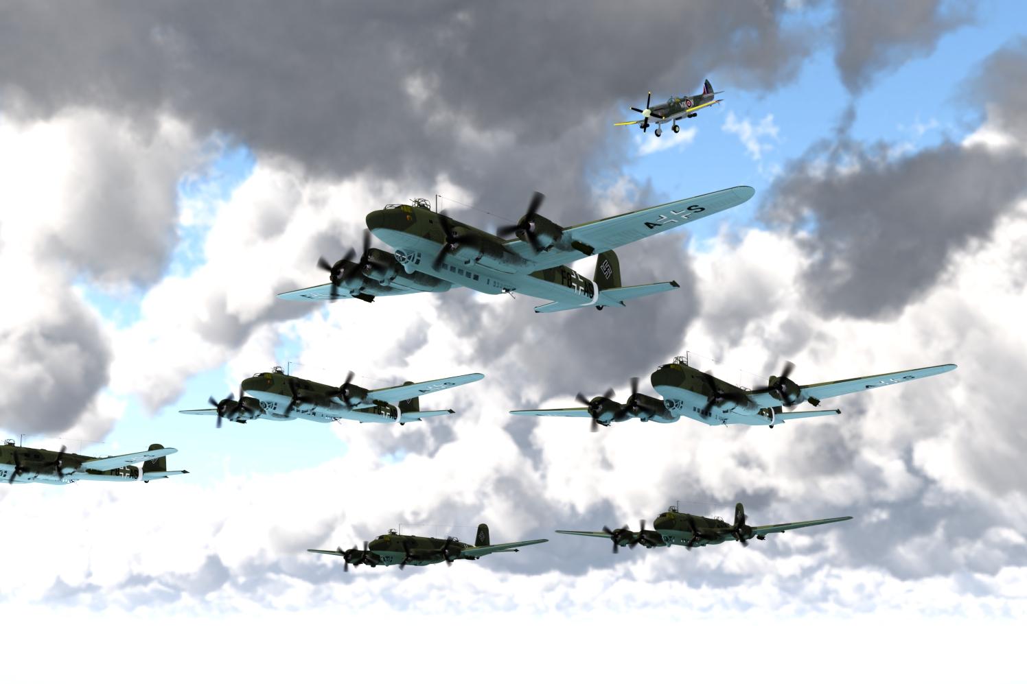 Trolling my library and came across these airplane models by Pedro Caparro. The sky is the HDRI from Modern Museum with Dome Orientation Z set at 15, camera tilted up and Draw Ground off to get only the clouds without the terrain.