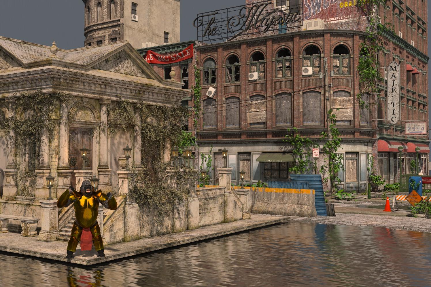 I wasn't happy with the way the armour rendered in this first render so I worked on it for the second one in the surface tab. I also changed the crush black settings which softened the shadows, too much perhaps. Lighting is an HDRI from TerraDome and the light that came with City Ruins.